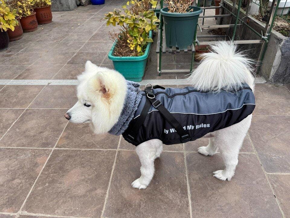 中綿たっぷり&防水オックス生地で、小雨の日も雪の日もぬくぬく。寒がりな大型わんちゃんにぴったり。