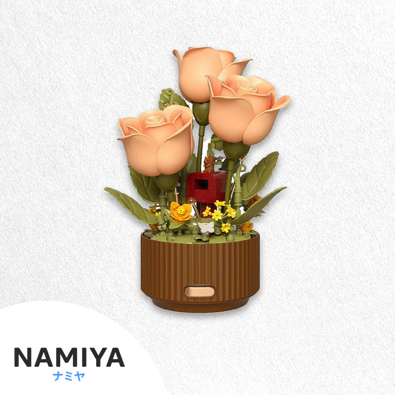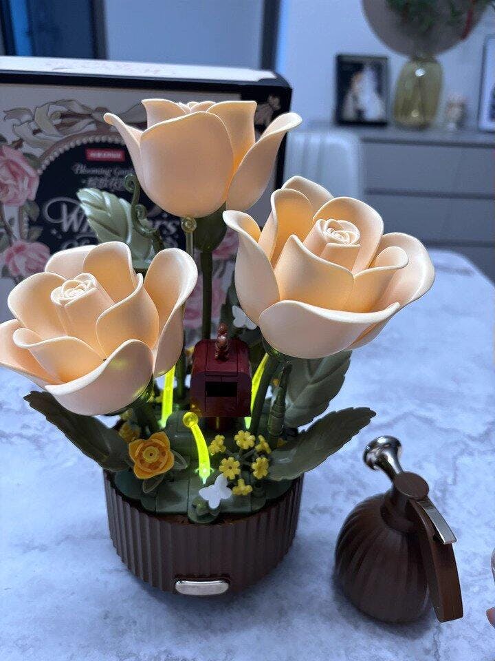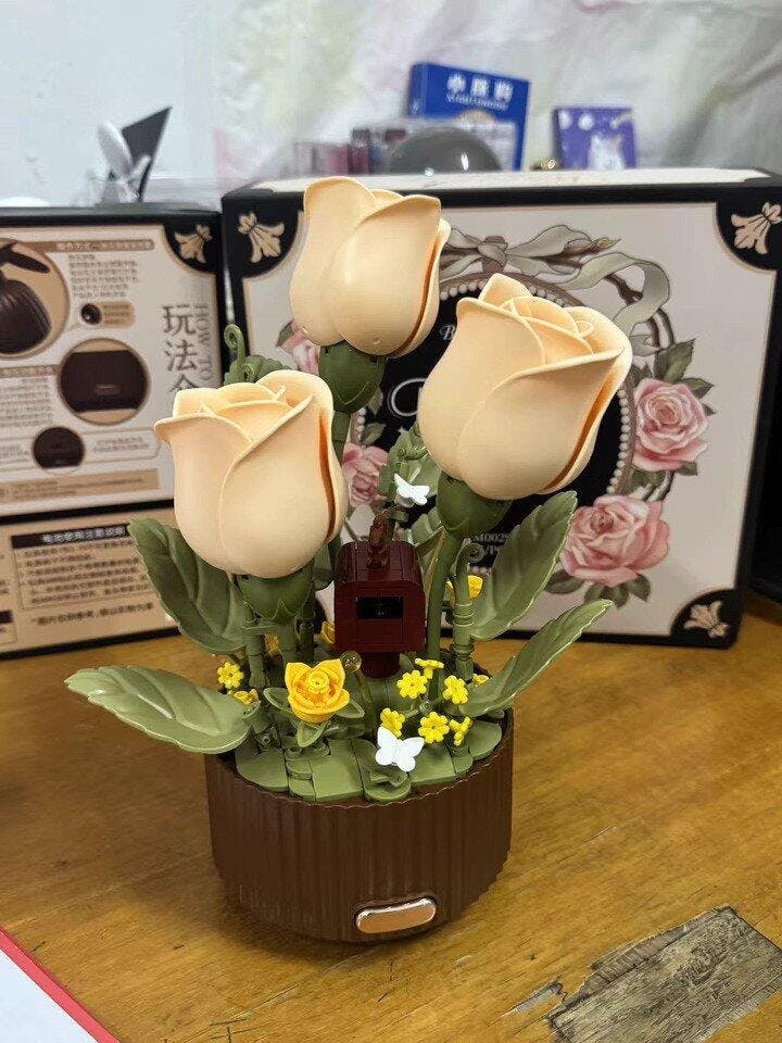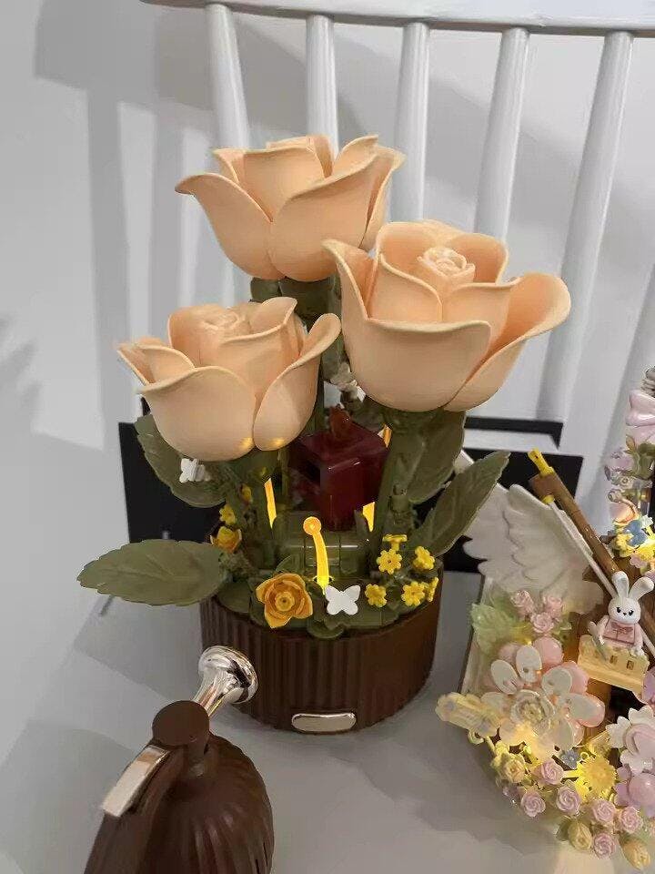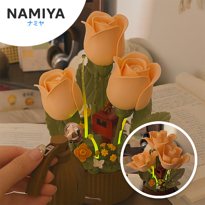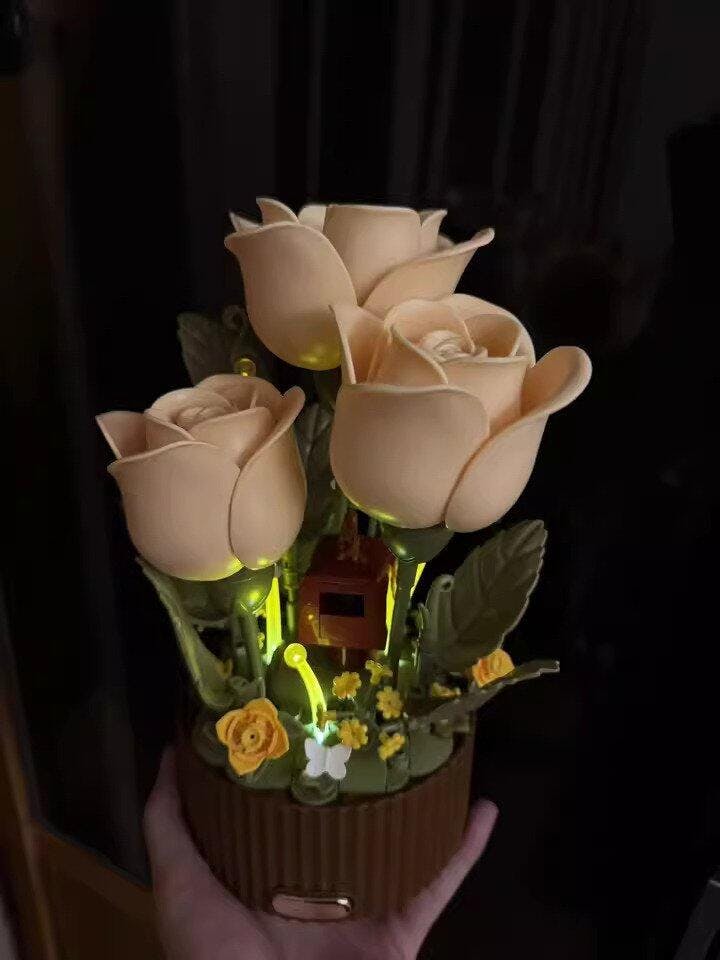 255ピースをカチカチ組み立てて、可愛いブーケランプに変身。集中しながら手を動かす時間も癒しになる。