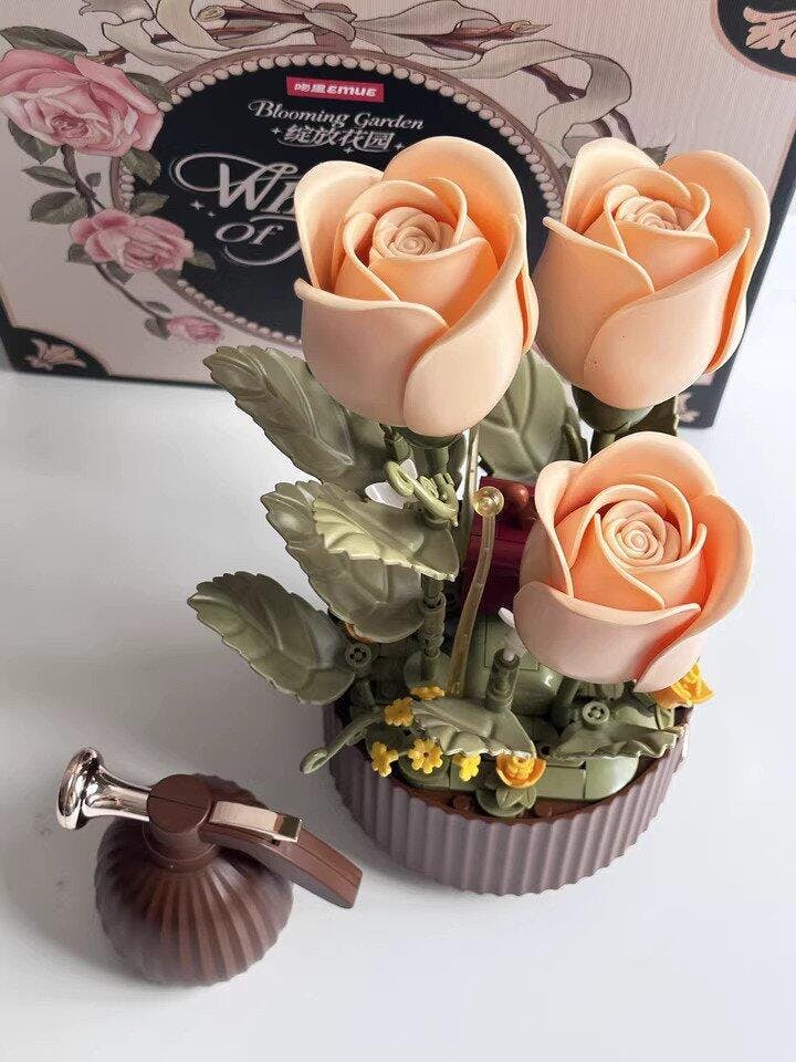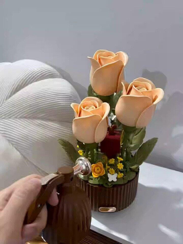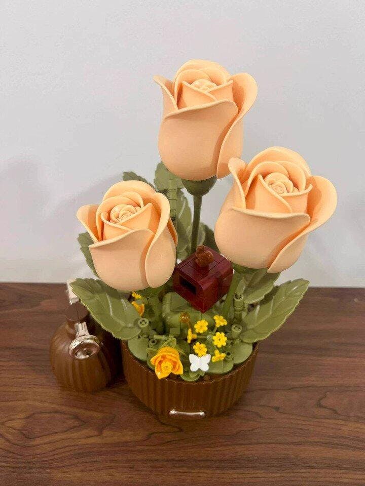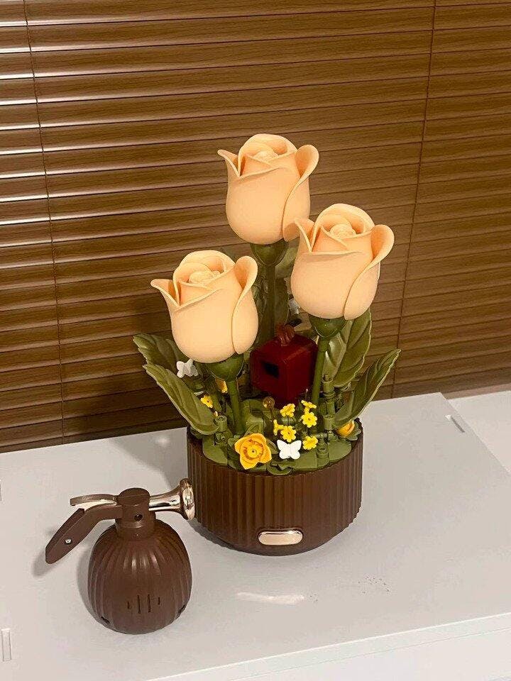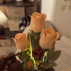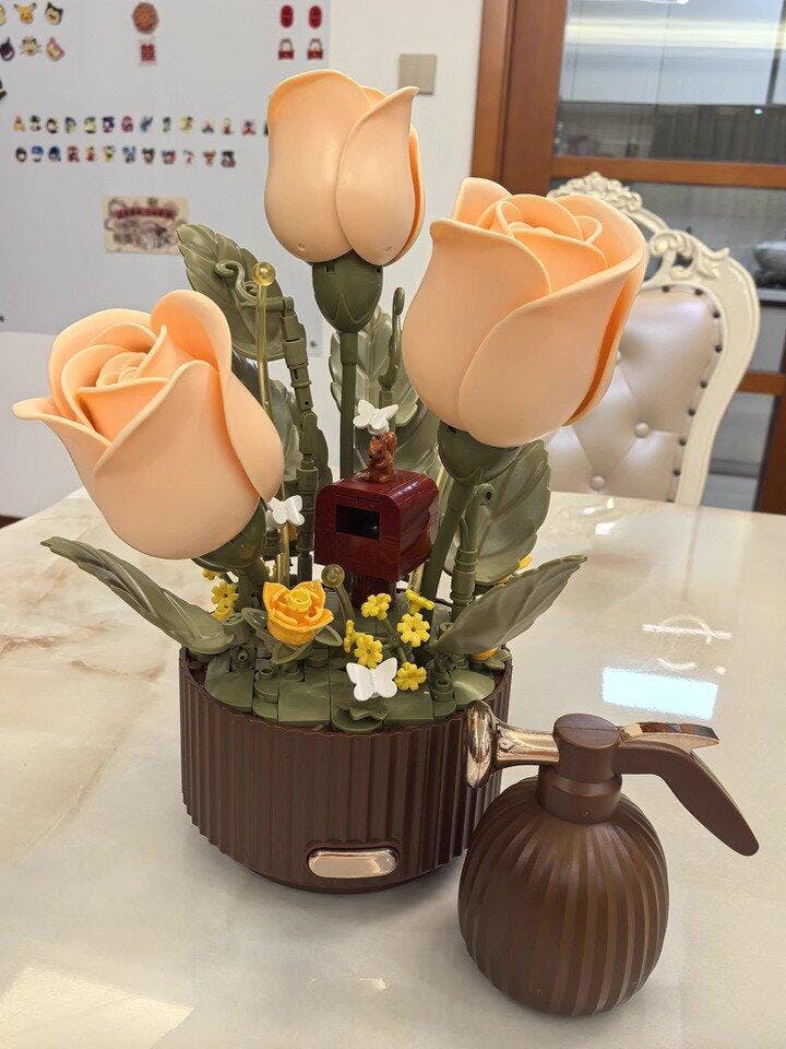 255ピースをカチカチ組み立てて、可愛いブーケランプに変身。集中しながら手を動かす時間も癒しになる。