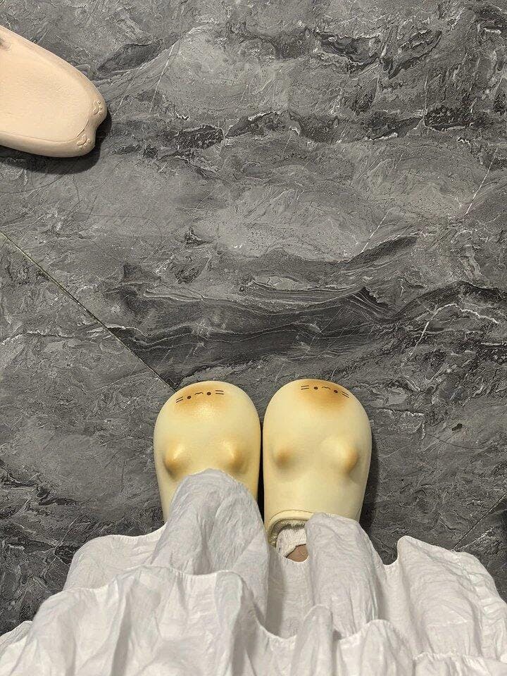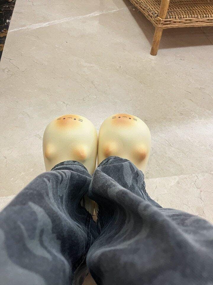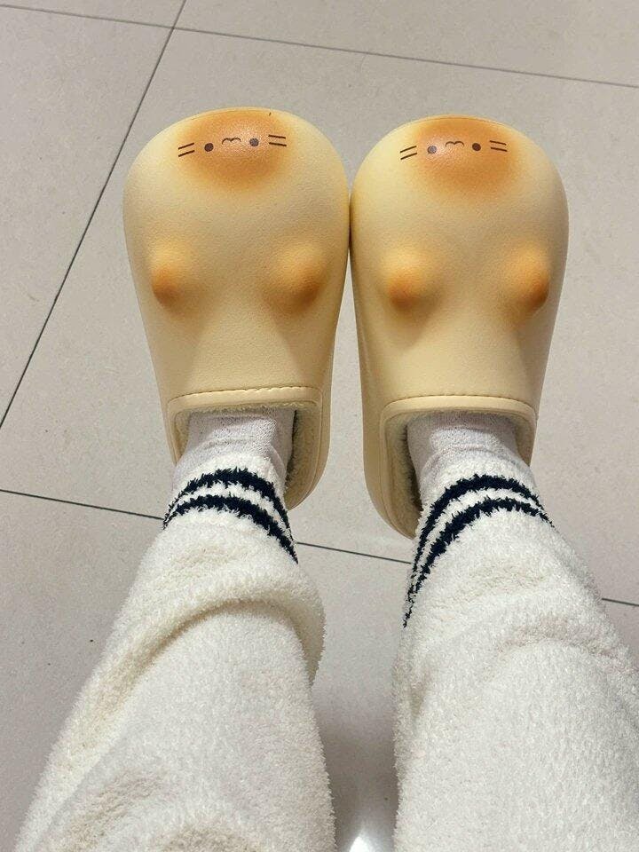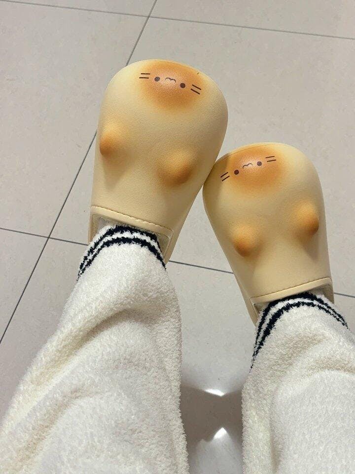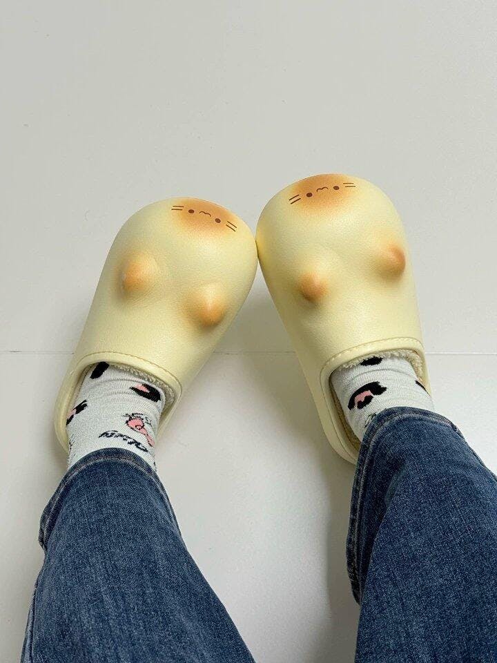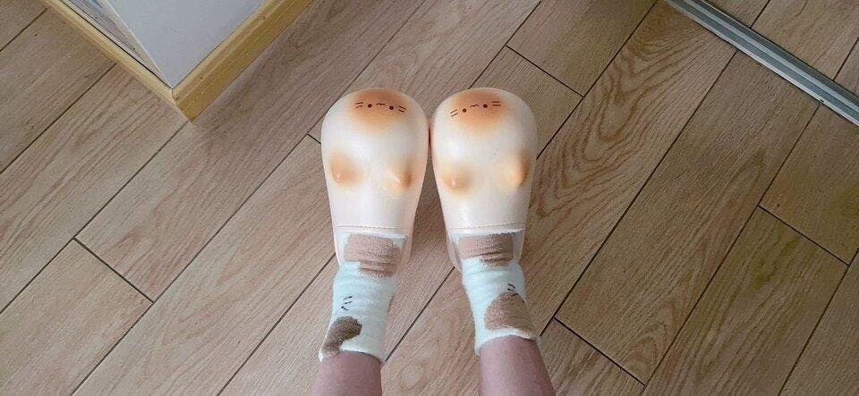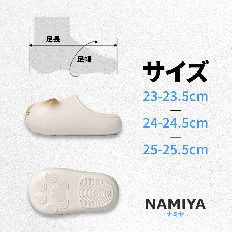 歩くたびに、ふんわり抱きしめられるような心地よさ。肉球ソールがすべりを防ぎ、冷たい床でも安心。