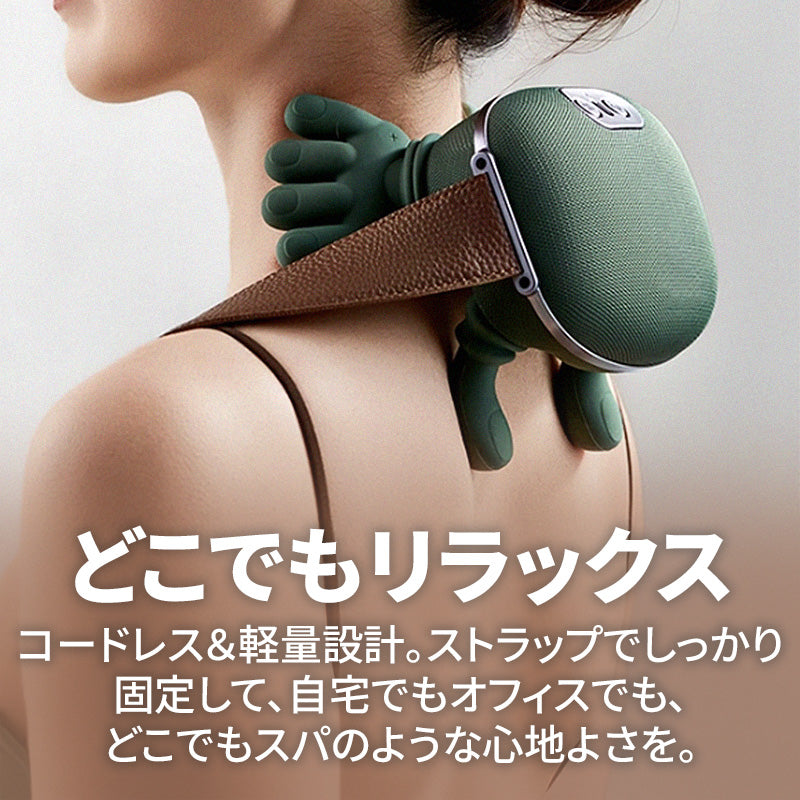 コードレス&軽量設計。ストラップでしっかり固定して、自宅でもオフィスでも、どこでもスパのような心地よさを。