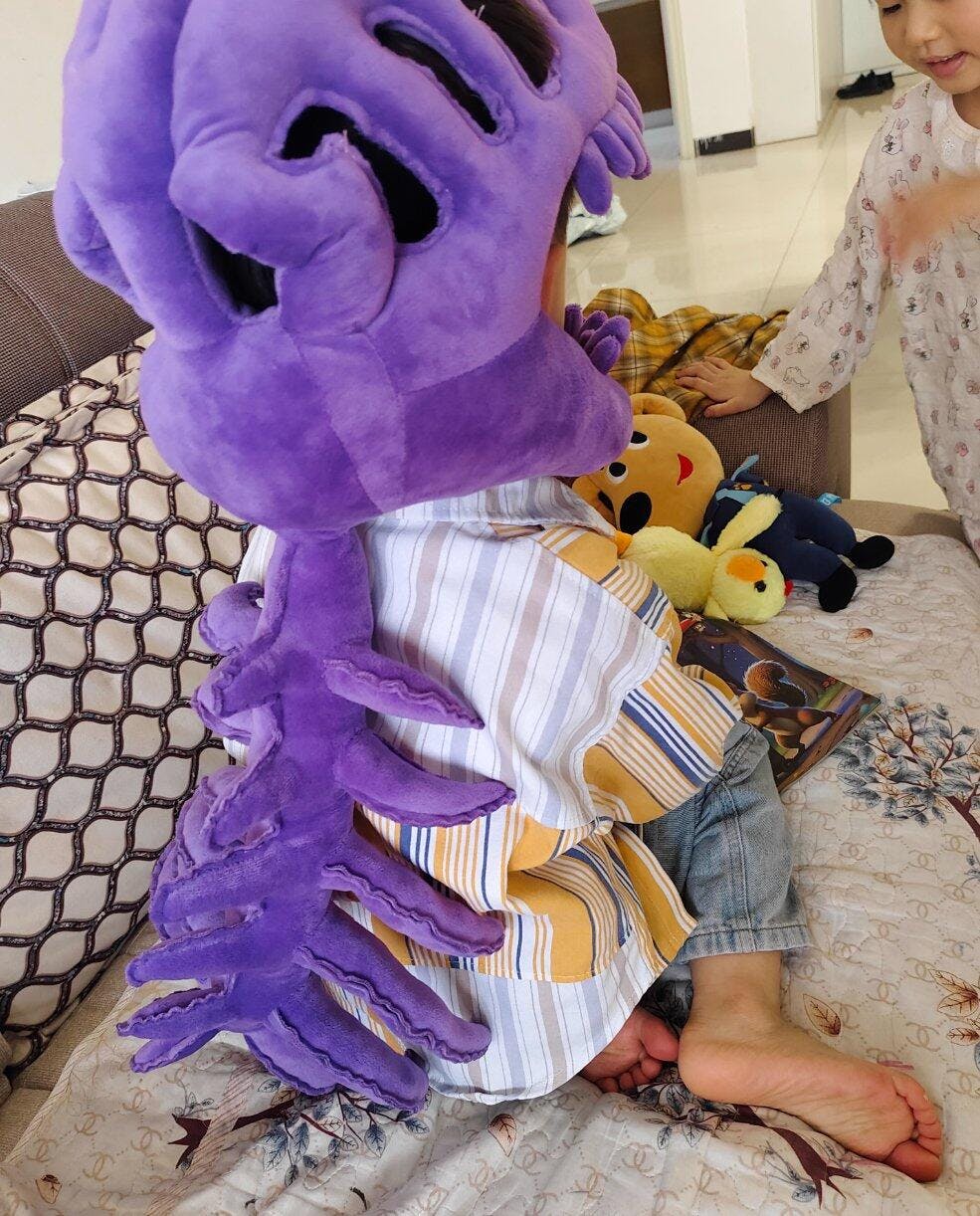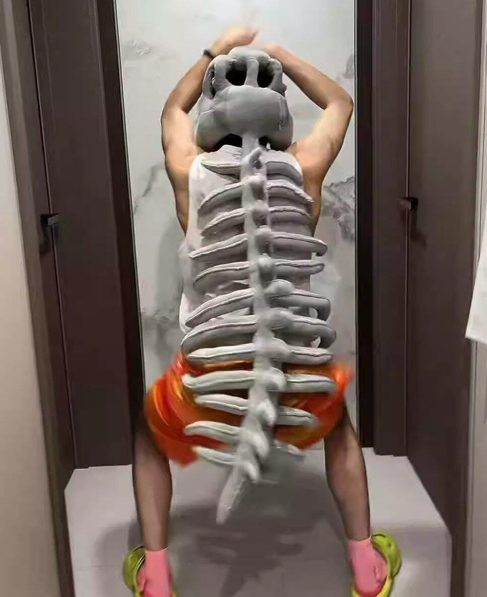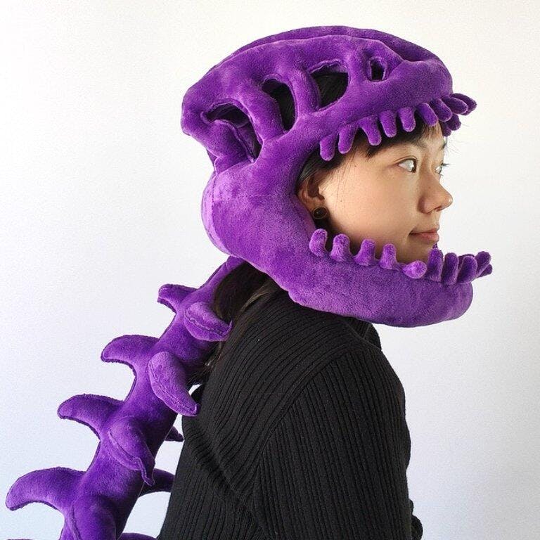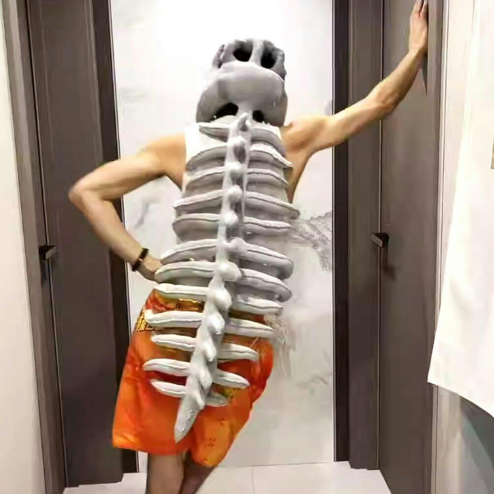 フルサイズの「スカル・アンド・スパイン 恐竜ぬいぐるみ」(装着可能な頭蓋骨フード付き+長い骨格ボディ)です。