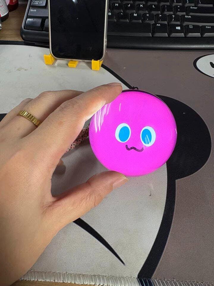 直径7cmのコンパクト感。手のひらにちょこん、デスクにそっと、バッグやツリーにも吊るせる。おうち、オフィス、旅行までどこでも連れていける。