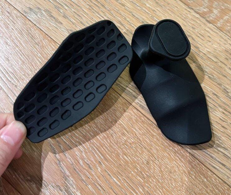 いいえ。シリコンの凹凸がしっかり食いつくので、汗をかいてもすべりにくいです。