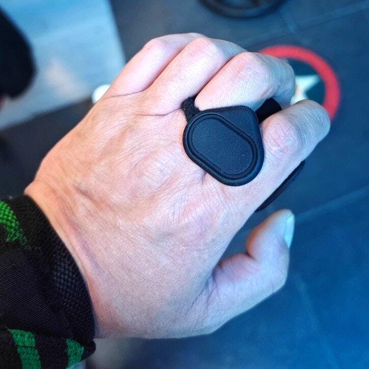 はい。柔らかいシリコンループが、ほとんどの手に心地よくフィットします。