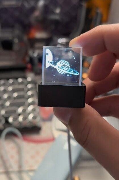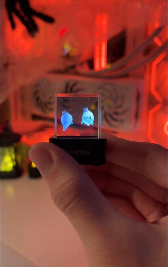 透明感のあるホログラムが、デスクや棚を一気に未来っぽく。小さくても視線をさらう主役アイテムに。