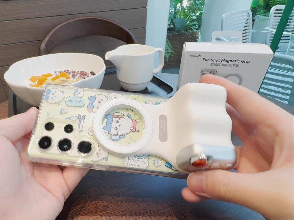スマホなのにDSLRみたいな安定感。フィンガーフックが手にしっくり馴染んで、プロっぽい一枚がサッと撮れる。