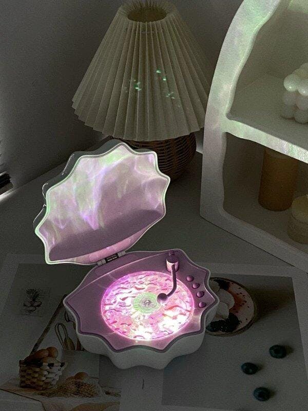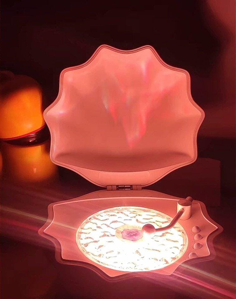 レトロなレコードプレーヤーみたいな貝がらデザイン。USB-C充電&部屋いっぱいに広がる投影で、「インテリア」と「一日の締めくくりタイム」を両方かなえてくれます。