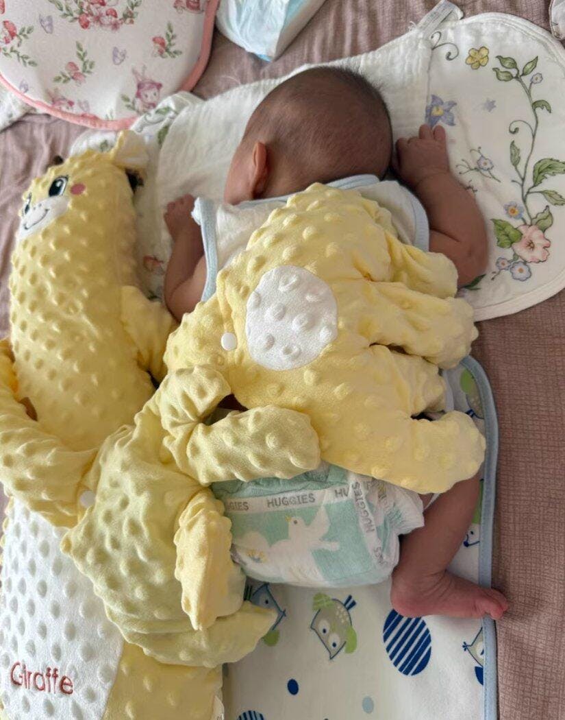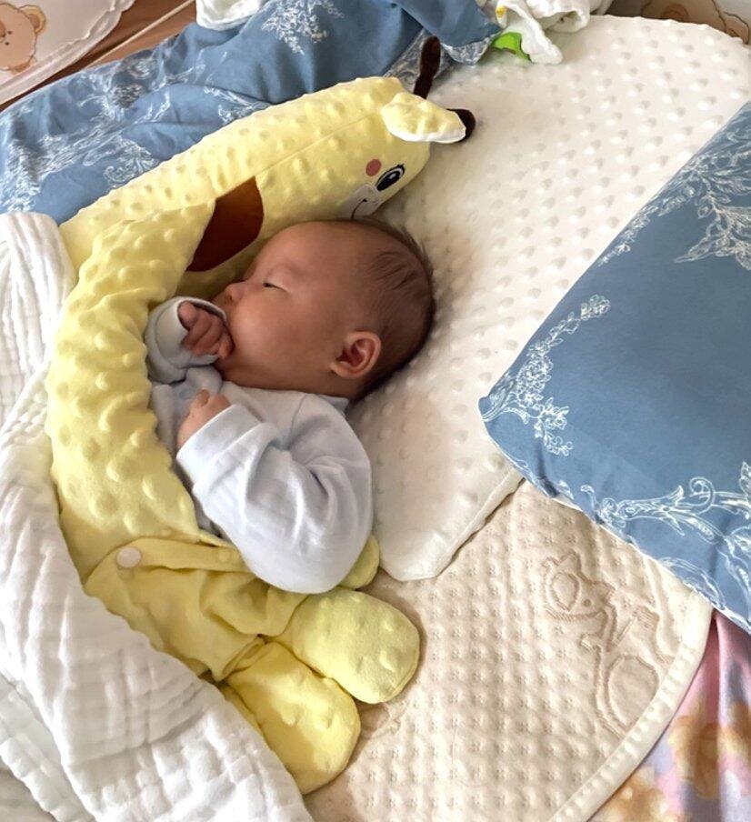 ふわふわの腕が赤ちゃんをやさしく包み込んで、ぐずりや夜のそわそわタイムをスッと落ち着かせてくれます。